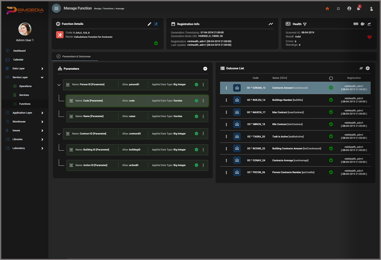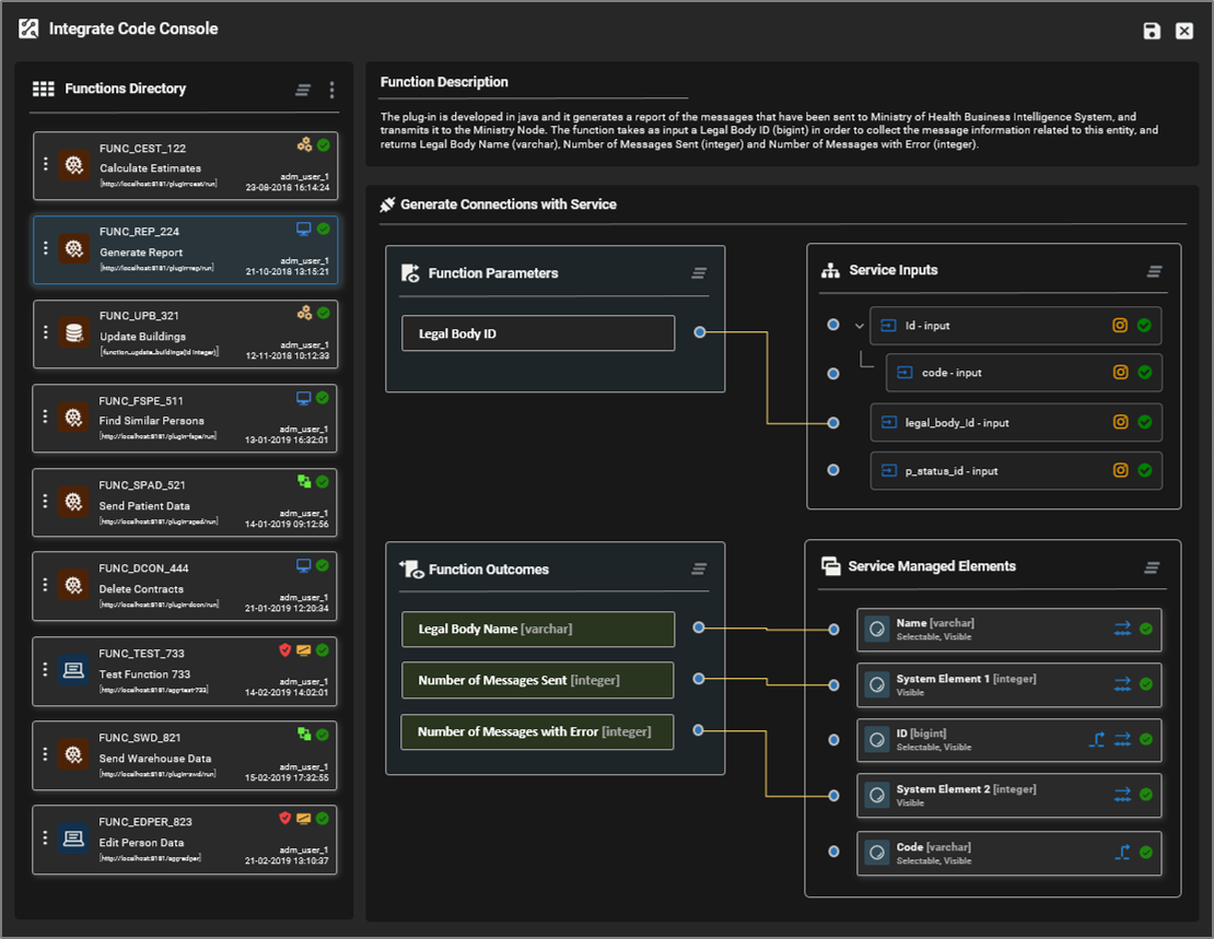 Primordia enables designers to easily integrate premade or new code to the platform and extend its possibilities, using the Function specification. This way you can reuse existing software assets to manipulate legacy data or develop new to perform complex transactions, where modeling is not an effective solution.