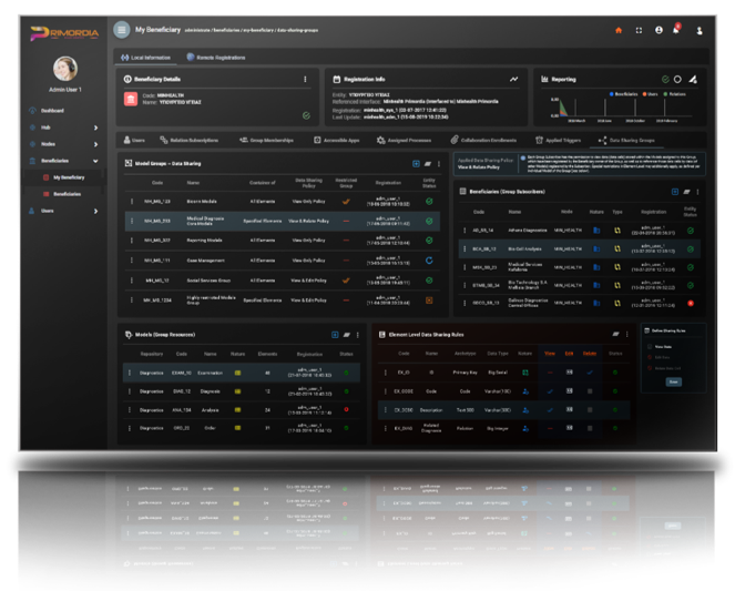 Each Primordia node is a multi-beneficiary and multi user work space. However, beneficiaries may need different apps or app releases, and users may have different privileges on the same processes in different periods.