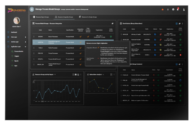 Primordia builds upon an all-inclusive specification stack allowing you to model any aspect of domain expertise and deliver smart applications rapidly in real time. From data models to complex process workflows, primordia assets are reusable building blocks which can be smoothly integrated and exploited by authorized designers of higher specification layers, through their exposed interfaces. You can organize your designer groups horizontally in layers, or vertically by business domain, enable them work together collaboratively on the same or interconnected assets, and allow real-time asset management through advanced re-configurable consoles and knowledge rich graphical visualizations.