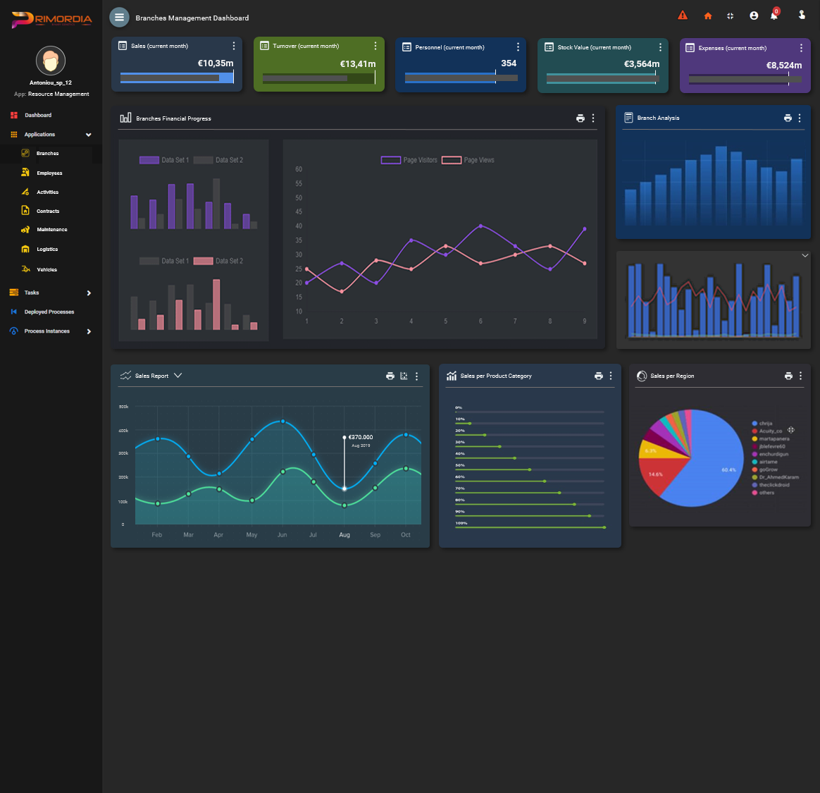 Jump from one app to the other; Primordia stores all your navigation actions, in order to continue your work in each and every app from the point you left it. Customize appearance and language separately for every accessible app, according to your preferences. Access your apps from any device; Primordia will smoothly adapt and respond to every channel conditions, smart phone, tablet, notebook, desktop, tv. Navigate in each app, adjust each and every screen to your task requirements; hide and display services, increase or decrease card sizes, change page content. Everything is saved and remembered for the next time you will enter the execution space of the platform.